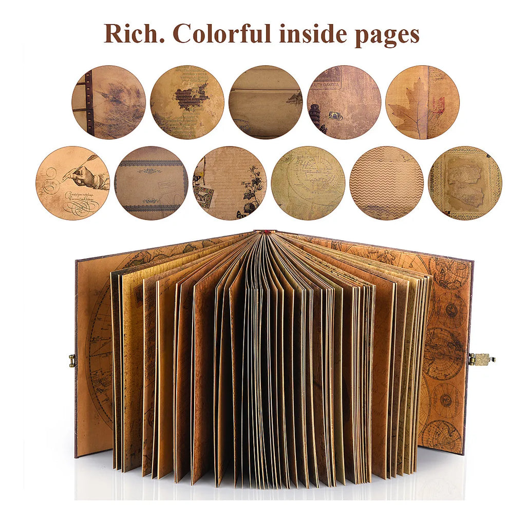Álbum 10x15"Incluye un estuchePortada de pasta dura, con Decorado Vintage148 páginas decoradasPapel grueso premium de 150g/mIncluye stickers