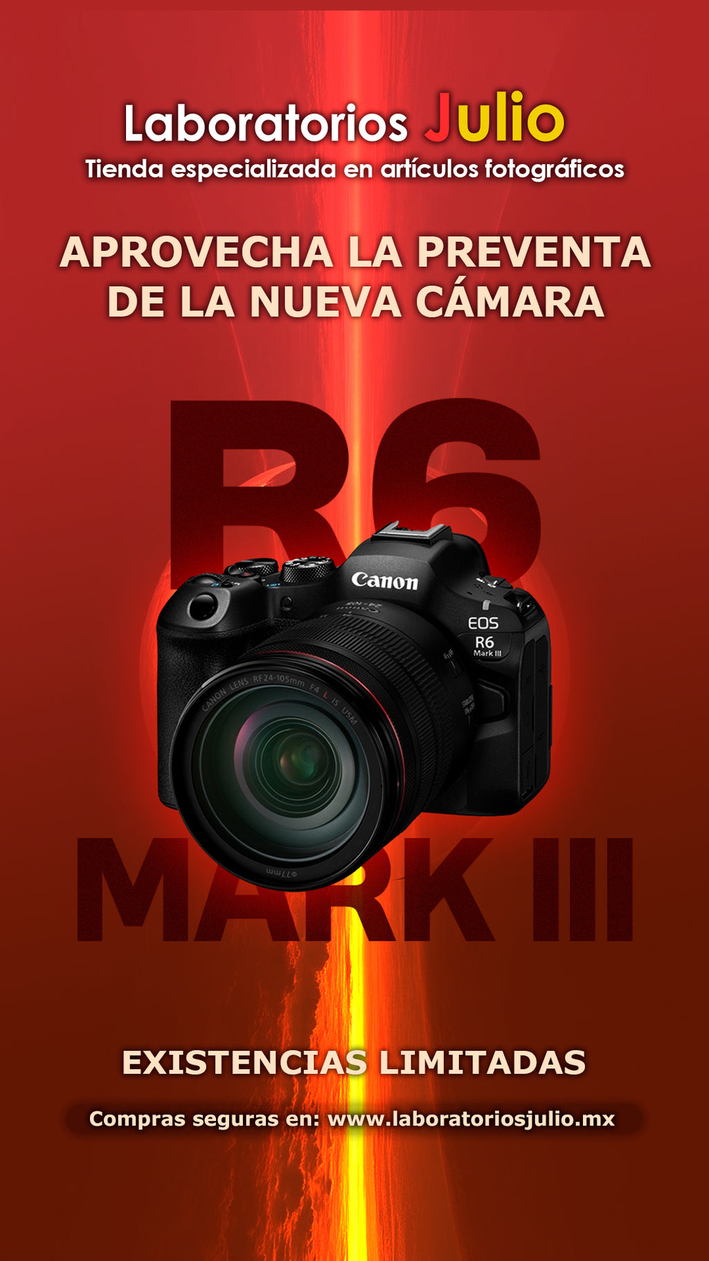 La Canon EOS R6 Mark III es una mirrorless Full Frame de 32,5 MP diseñada para fotógrafos y creadores que buscan velocidad, detalle y rendimiento profesional. Ofrece ráfaga de 40 fps, enfoque Dual Pixel CMOS AF II con detección inteligente, estabilización de hasta 8,5 pasos, y vídeo 7K RAW con modo Open Gate. Cuenta con doble ranura (CFexpress + SD), cuerpo sellado y ergonómico, y está pensada para uso intensivo en cualquier entorno.